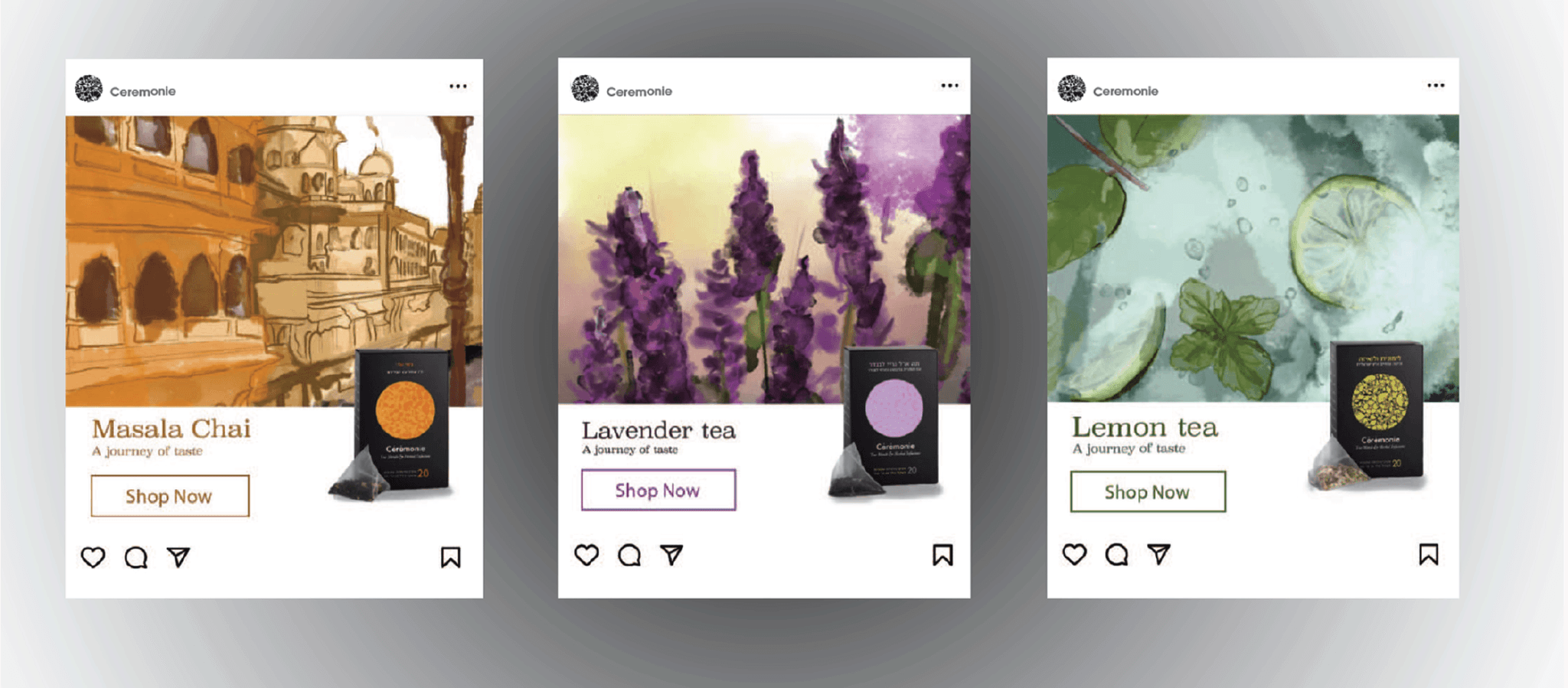 Rebranding for Ceremony Tea Series.Creating an Experience Through Flavors Using Watercolor Illustrations